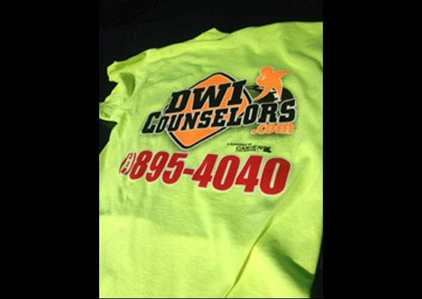 Shirts are VERY bright safety green (lime-ish) | Like Road Workers Wear | Logos alternate front and back